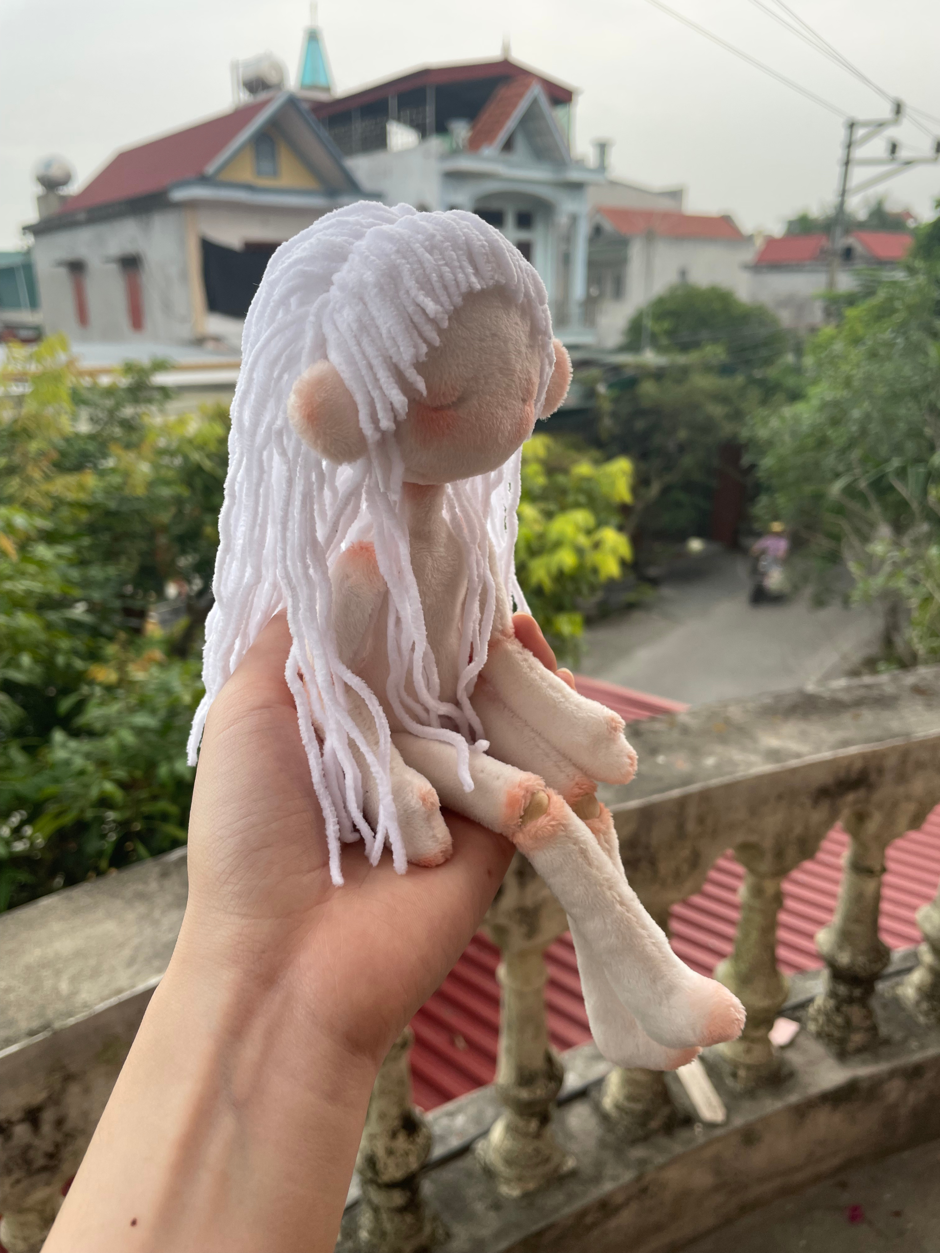 Đây là bé búp bê thứ 2 mà mình làm, cũng chính là phần quà trong đợt giveaway đầu tiên tổ chức trên tiktok.